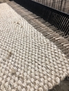 Alfombra tejida en telar con base de hilo de yute natural y urdimbre en hilo sisal natural.