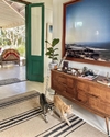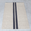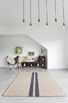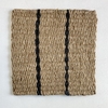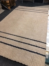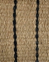 Alfombra tejida en telar en hilo de yute natural con rayas negro en mismo material.
