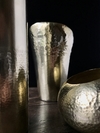 Realizado en placa de bronce hecho a mano por artesanos del norte argentino en técnica martelé. Forma cilíndrica de 23 cm de alto por 9,5 cm de diámetro. Detalle martele en base hasta centro del cilindro.